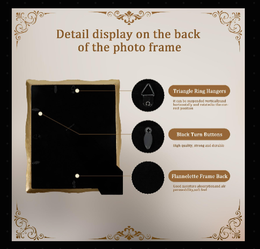 Embossed Vines Design Photo Frame with Easel & Hook